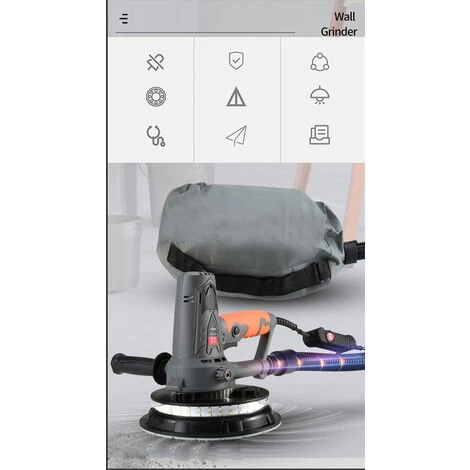 PUISSANT ET POLYVALENT: ponceuse murale avec moteur 750W pour fournir une puissance efficace et dynamique pour diverses opérations de ponçage; parfait pour meuler les murs secs, les plafonds, les murs intérieurs, les murs extérieurs, les revêtements de peinture, les adhésifs et le plâtre en vrac.