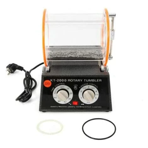 Remarque :About switches of the Rotary Tumbler Jewelry Polisher, on the left isInterrupteur de minute. Tournez la gauche est normalement ouverte, ce qui est toujours ouvert.Tournez la droite à la minute, rassembler quelques minutes et elle s’arrête automatiquement.L’interrupteur droit est le câble 1,2, 3, 4, 5, chaque commande dans le milieu est séparée par un arrêt.Le commutateur rouge est inverseur (commutateur positif et négatif), et il n’est pas allumé / éteint.État : neuf.Couleur : noir.Tension : 220 V.Puissance : 180 W.Capacité : 5 kg.Dimensions du bar en verre : 190 x 180 mm.Dimensions de la machine : 28 x 22 x 29 cm.Poids : 6 kg.La rotation bidirectionnelle peut être timée, en cinq vitesses en option.5 vitesses et minuterie de 10 à 60 minutes.