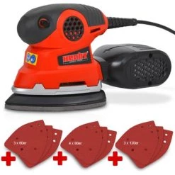 Hecht 1760 Ponceuse orbitale Ponceuse polyvalente forme triangulaire 220 W 10 Feuilles Abrasives Papier Équipé Système de Collection de Poussière!
