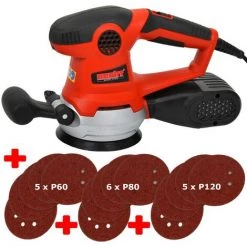 HECHT 1764 Ponceuse excentrique 450 W Variateur de vitesse continu 16 Feuilles Abrasives Papier Équiper Système de Collection de Poussière et beaucoup d’accessoires !