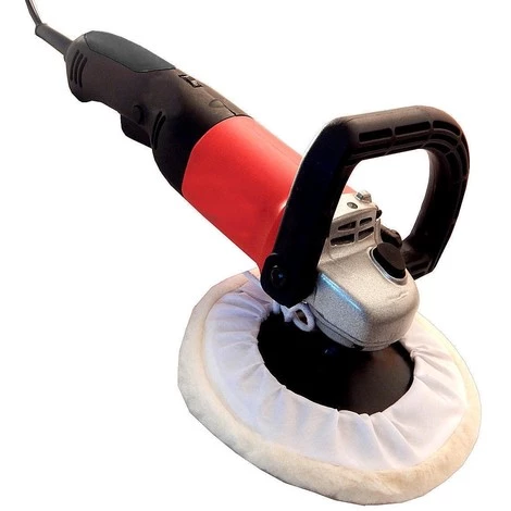 Polisseuse de 1200 watts d’un diamètre de 180 mm b avec large poignée plastique, permettant de passer d’un polissage lent jusqu’à un polissage agressif grâce à son variateur de vitesse faisant passer de 500 à 3000 Rpm.Le bouton lock vous permet de bloquer la vitesse en continu.A utiliser avec bonnet en laine de polissage adapté.