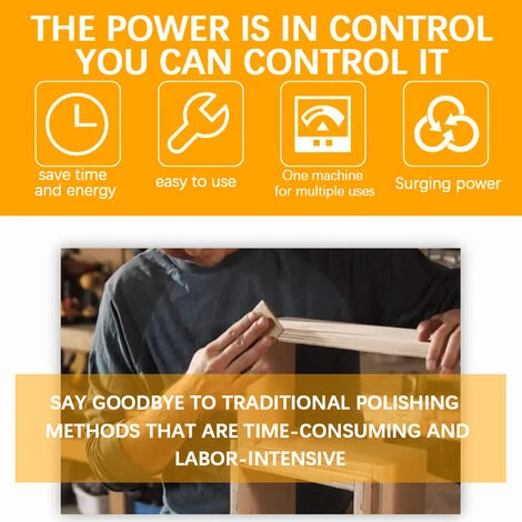 - 2. Travail efficace; Cette ponceuse électrique vous permet de faire vos adieux à la méthode de ponçage traditionnelle. Le moteur tout en cuivre de 240W apporte une puissance de pointe, et vous pouvez apporter un travail plus efficace à votre ponçage ou polissage.