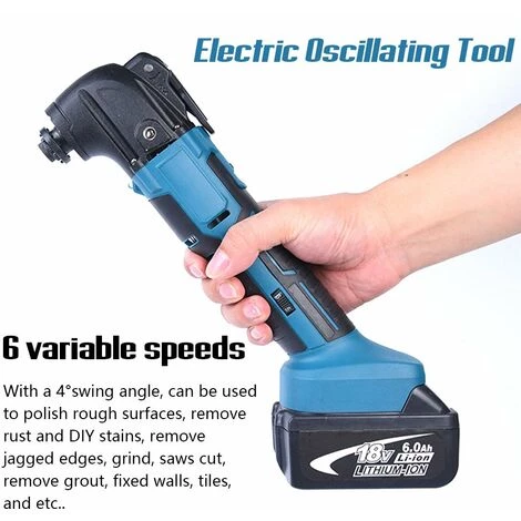 Il s’agit d’une sorte d’outil oscillant électrique de qualité, qui est de conception sans fil, avec un corps compact avec une poignée souple ergonomique, ce qui est pratique pour le travail à l’intérieur et à l’extérieur. Équipé de 6 vitesses variables, avec un taux d’oscillation réglable, facile à satisfaire avec vos différentes demandes. Avec un angle de rotation de 4°, peut être utilisé pour polir les surfaces rugueuses, enlever les taches de rouille et de bricolage, enlever les bords déchiquetés, meuler, couper à la scie, enlever le coulis, les murs fixes, les carreaux, etc.