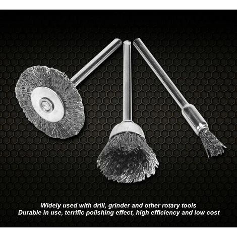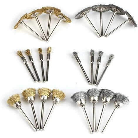 - Cet ensemble de brosses de polissage se compose de 24 pièces de brosse à roue métallique, il existe 3 types de diamètres différents et de deux matériaux en acier inoxydable et en laiton, qui peuvent satisfaire vos différentes demandes.