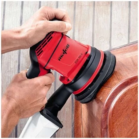 Grâce à la poignée ergonomique supplémentaire, EVA 150 E permet d‘effectuer chaque opération de ponçage de manière optimale à deux mains. Si vous n‘en avez pas l‘utilité, il est possible de la retirer