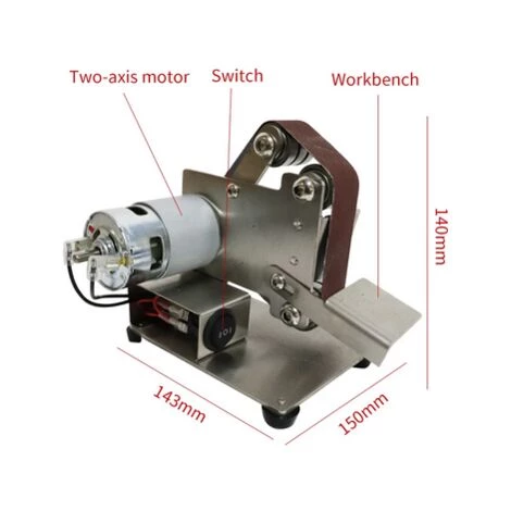 Il s’agit d’une ponceuse a bande multifonctionnelle, mini portable, a faible bruit, peut etre utilisee pour le meulage grossier de forets en acier a grande vitesse, les bords de lame, l’outil de tournage en acier au tungstene pour le meulage fin, le polissage de la racine de Bodhi, etc. un outil de bricolage a domicile.