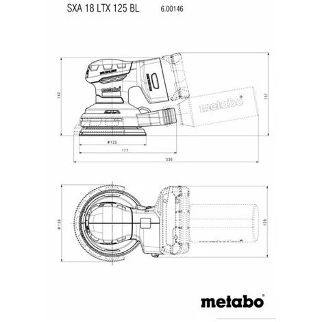 Metabo 18V orbite de la batterie ponceuses Set SXA 18 LTX 125 BL + accessoires / sans batterie, sans chargeur