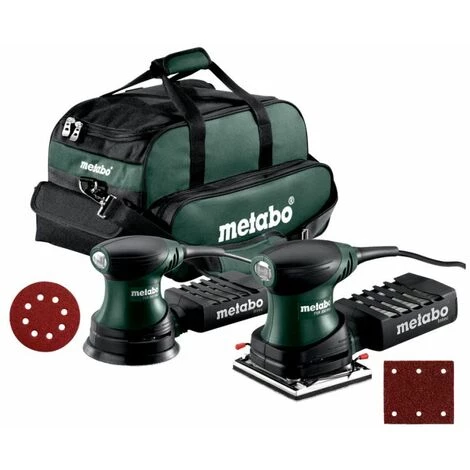 Metabo Grinder Sander FSR 200 + alĂ©atoire Orbit Sander FSX 200 + Accessoires Machine lĂ©gère et pratique pour une opĂ©ration d’une main confortable