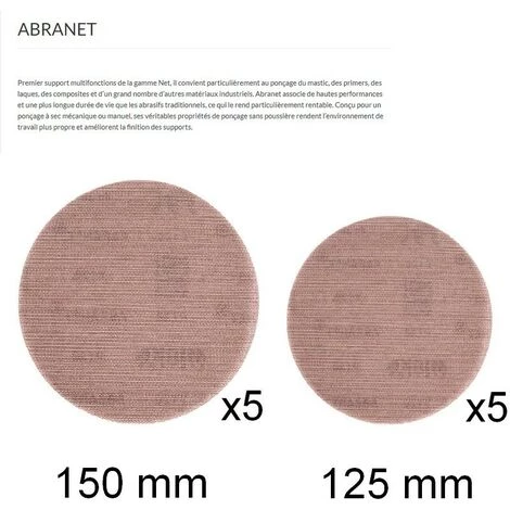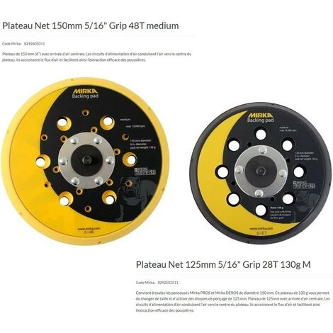 Pack complet: ponceuse Mirka DEROS 125/150 mm orbital 5,0 mm + plateau de 150 et 125 mm, alimentation, tuyau d’extraction, protecteur plateau 150mm 67 trous et 125mm 33 trous et 10 disques ABRANETs