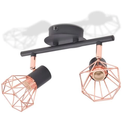 Ce plafonnier avec 2 projecteurs présente un design industriel et améliorera le look de n’importe quelle pièce. La lampe peut être facilement montée au mur ou au plafond grâce à sa base en métal noir de haute qualité. Les abats-jour des projecteurs uniques en fil de fer cuivré ajoutent à son style industriel et créent un effet agréable, lorsque la lumière est émise à travers eux pour éclairer chaque coin de la pièce. Cette lampe convient aux ampoules E14, mais veuillez noter que les ampoules ne sont pas incluses dans la livraison.
