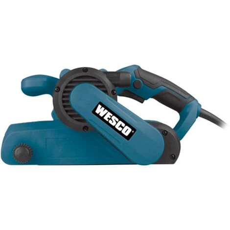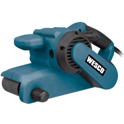 Avec cette ponceuse à bande de Wesco vous pouvez poncer plusieurs grandes surfaces comme des portes ou des tables. La machine est facile à utiliser et vous pouvez changer la bande de ponçage d’une manière facile et rapide.