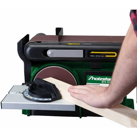 Caractéristiques : Système de serrage rapide pour un changement rapide de la bande abrasive Raccord intégré pour aspirateur Châssis en fonte sans torsion La bande abrasive peut être utilisée aussi bien horizontalement que verticalement Double guidage de la table pour une meilleure stabilité Table de ponçage réglable sous angle de 0° à 45° Table du disque en aluminium Convient pour : Le travail de bois dur et de bois tendre La production de toutes sortes de formes : longs côtés, surfaces, angles, surfaces planes et angles droits Les maquettistes et les bricoleurs exigeants Livrée avec : Guide transversal de -60 à +60 ° Bande abrasive 914 x 100 mm, grain 80 Bande abrasive ø 150 mm, grain 80 (collée)