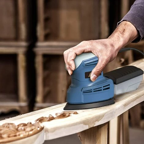 Travail précis: Grâce à sa conception compacte, la ponceuse excentrique triangulaire offre un contrôle optimal – la poignée en caoutchouc optimisée garantit de meilleurs résultats lors du ponçage de zones inclinées