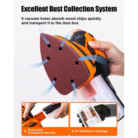 Le puissant trou d’aspiration à 6 attrape beaucoup de débris dans la boîte à poussière. Boîte à poussière transparente amovible, ne soyez plus gêné par la poussière.