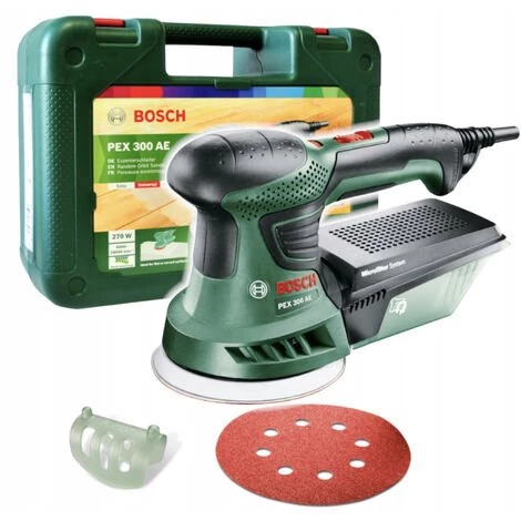 - La ponceuse excentrique Bosch PEX 300 AE brille lors des travaux de ponçage de courbes et de polissage.