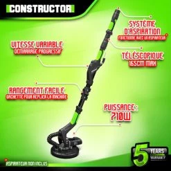 Ponceuse Murs Et Plafonds 710W – 225mm Avec Vitesse Variable Et 6 Abrasifs – Constructor