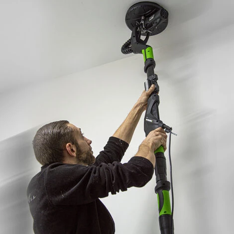 Grâce à son manche téléscopique (max 165cm), vous pouvez facilement poncer votre plafond sans pour cela devoir utiliser une échelle et elle est aussi pliable pour un rangement aisé.