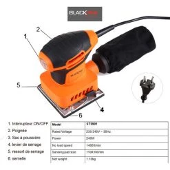 BLACKPINE – 160W Ponceuse Vibrante Mouse Multifonction, 12 Pcs Disque De Ponçage Fournis