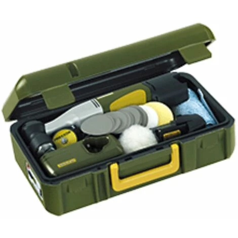 • pendant au moins 30 minutes d’utilisation puissante avec une charge de batterie 10,8 V. Vitesse de rotation de 1100 à 2600 / min. Excentrique course de 11 mm. Longueur 305 mm. Poids 950 g (incl. Batterie). 1x Proxxon batterie 10.8V Orbital EP / A